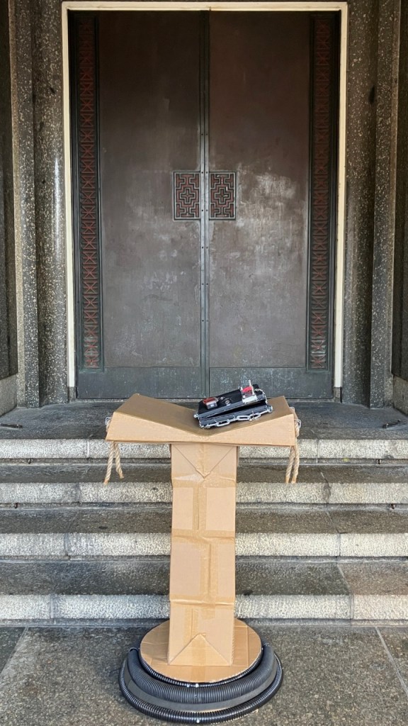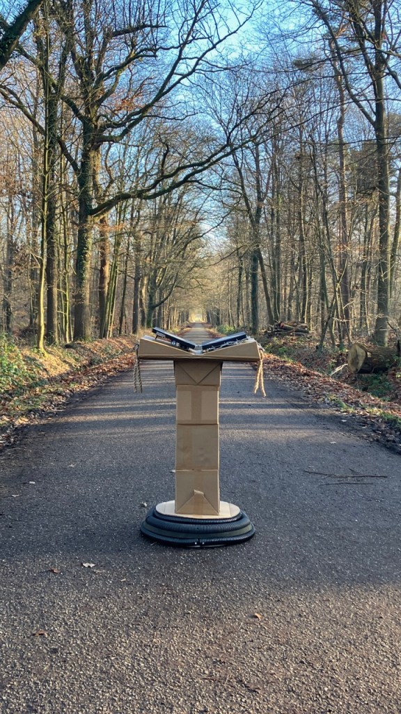 The work consists of an allegorical tome titled ‘a guide to life’ resting on a lectern.