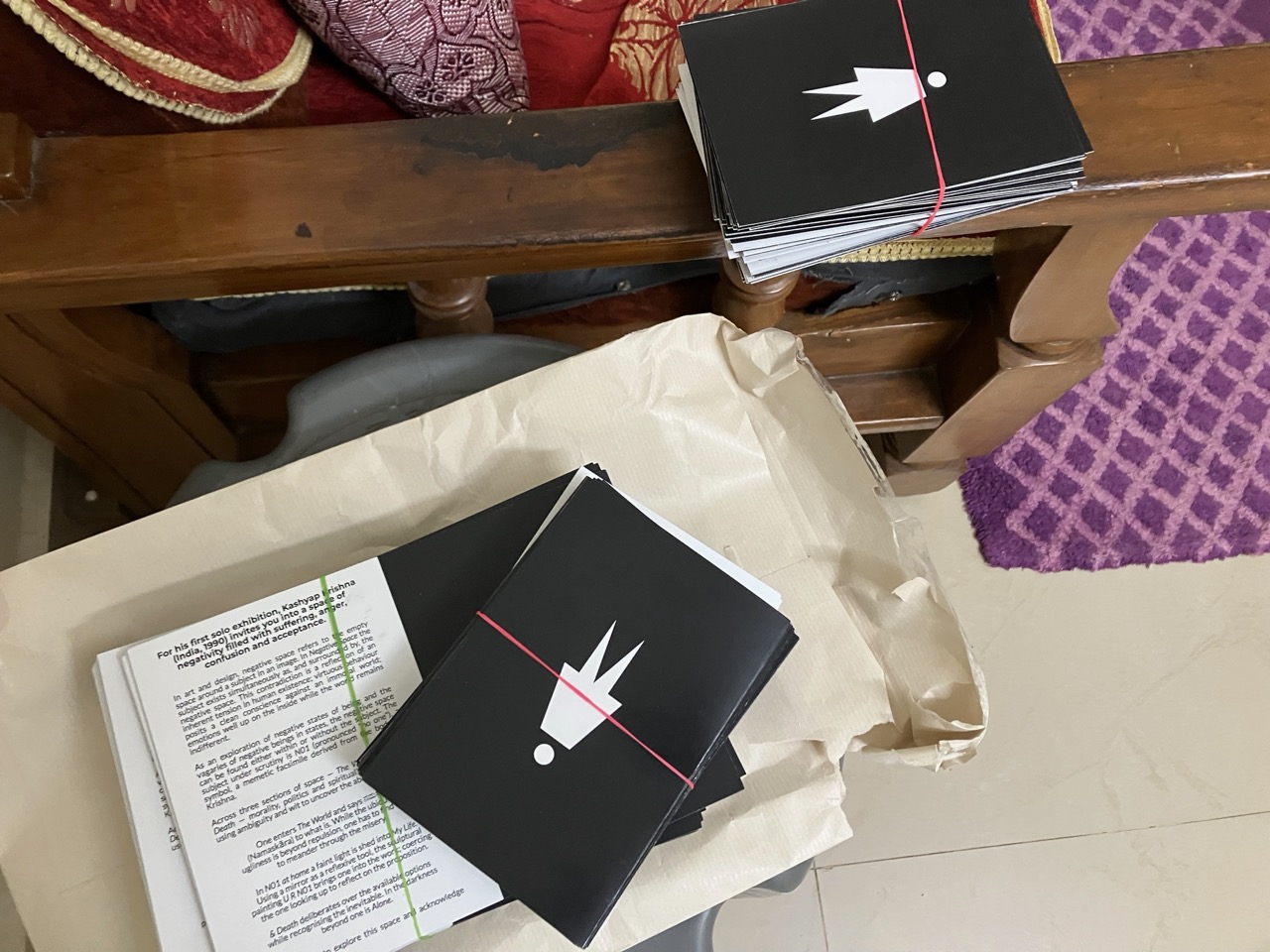 | Credits | Organization – Mikos Teuben & Annette Krijnen Location – Robson Stichting Vierkwart Advertisement – KunstKrant, De Witte Raaf & Metropolis M Printing – Printo Materials – Bertus Workel, Action & Praxis Rental – Bo-Rent Installation – Eve Haberman & Sebastiaan Photography – Pauline Strasters Music – Deev Bennes Poster & Translation – Ray Andreas Concept, Installation, Design & Images – Kashyap Krishna with thanks to my parents – Rama Krishna Naik & Subbalakshmi, Vishakha Dhelia, Marissa Kalkman, Miriam Bonder, Deepika, Erik Kappelhoff, Patyt Reyes, Geert Buis, Alex Hodge, Tankstation Cultureel Vulpunt, KunstNonStop, CC De Schakel & the people of Marktplaats. ಮತ್ತು ಪುರಂದರ ದಾಸರು ಸ್ಫೂರ್ತಿಗಾಗಿ. |