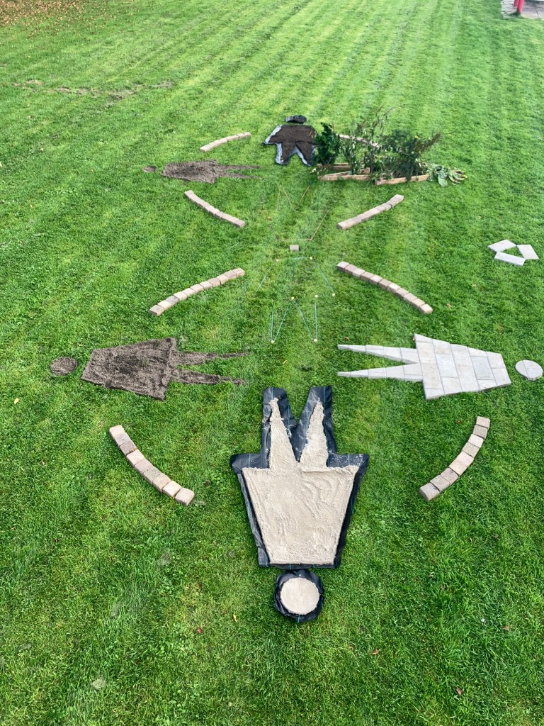 The ideal choice is to dig the soil out of the ground. This helps in emphasising the effects we have on nature. If permission cannot be granted for this, then an alternative is to build everything on top of the ground using wooden templates.