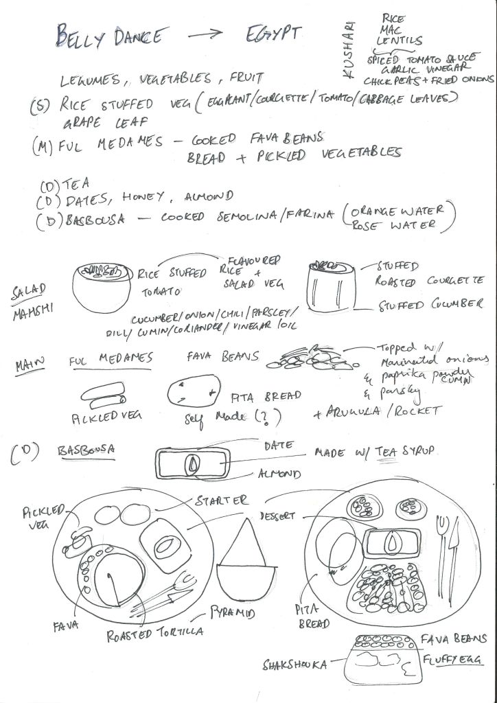 Ingrid from Al Hayat Dance planned a dance workshop to teach people the intricacies of controlled gyrations of the belly devised by women in Egypt. I designed a brunch that would complement the workout and the culture.