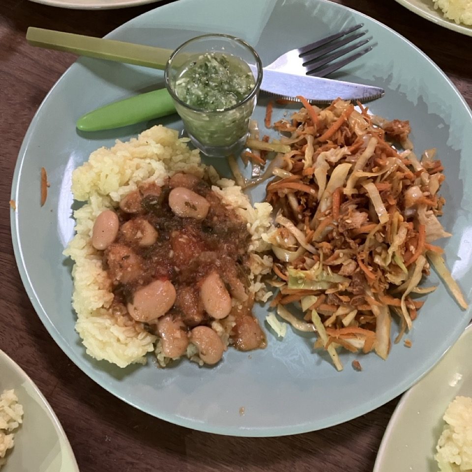 Rice with Bean palya, kosambri, papad & kaalu gojju