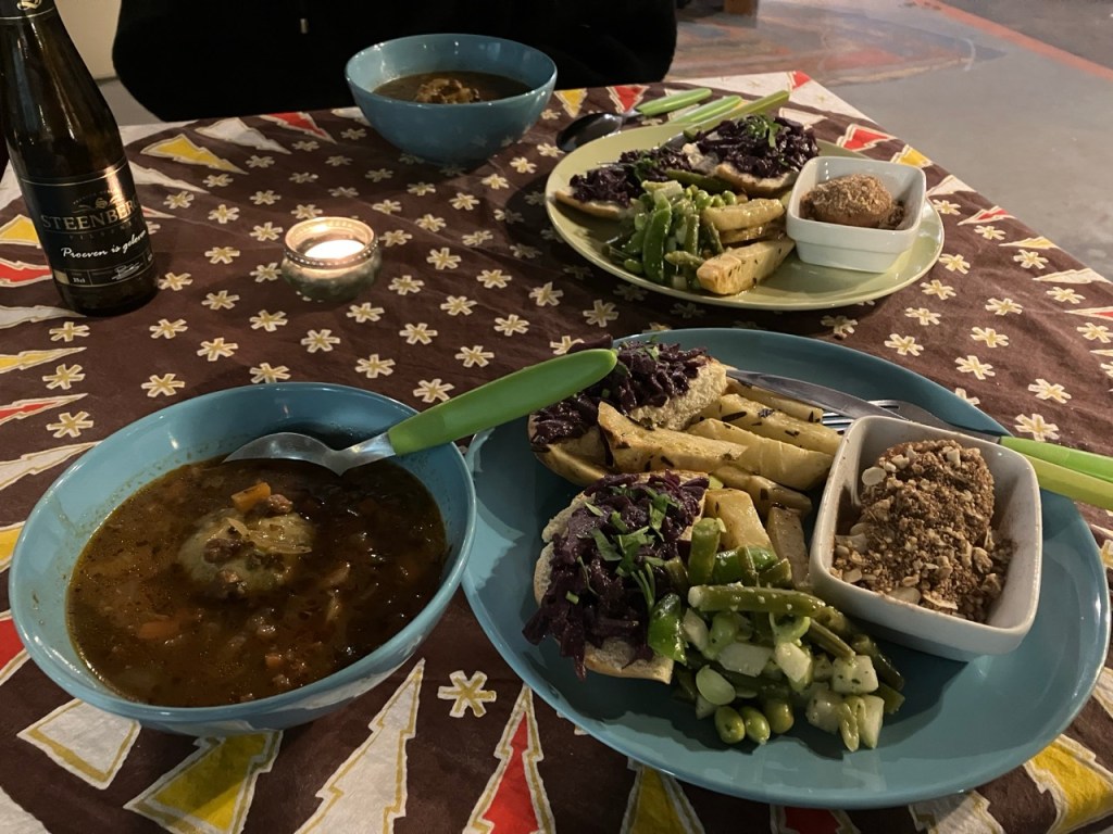 I served a Sólet inspired stew as a time bomb bean stew. The beans were ticking away in the night. The inital plan was to make it out of kidney beans but the huge influx of canned mixed beans meant there were perhaps 8 different beans in the stew! This turned out pretty filling. I heard some comments about it being spicy some while not at all from others.